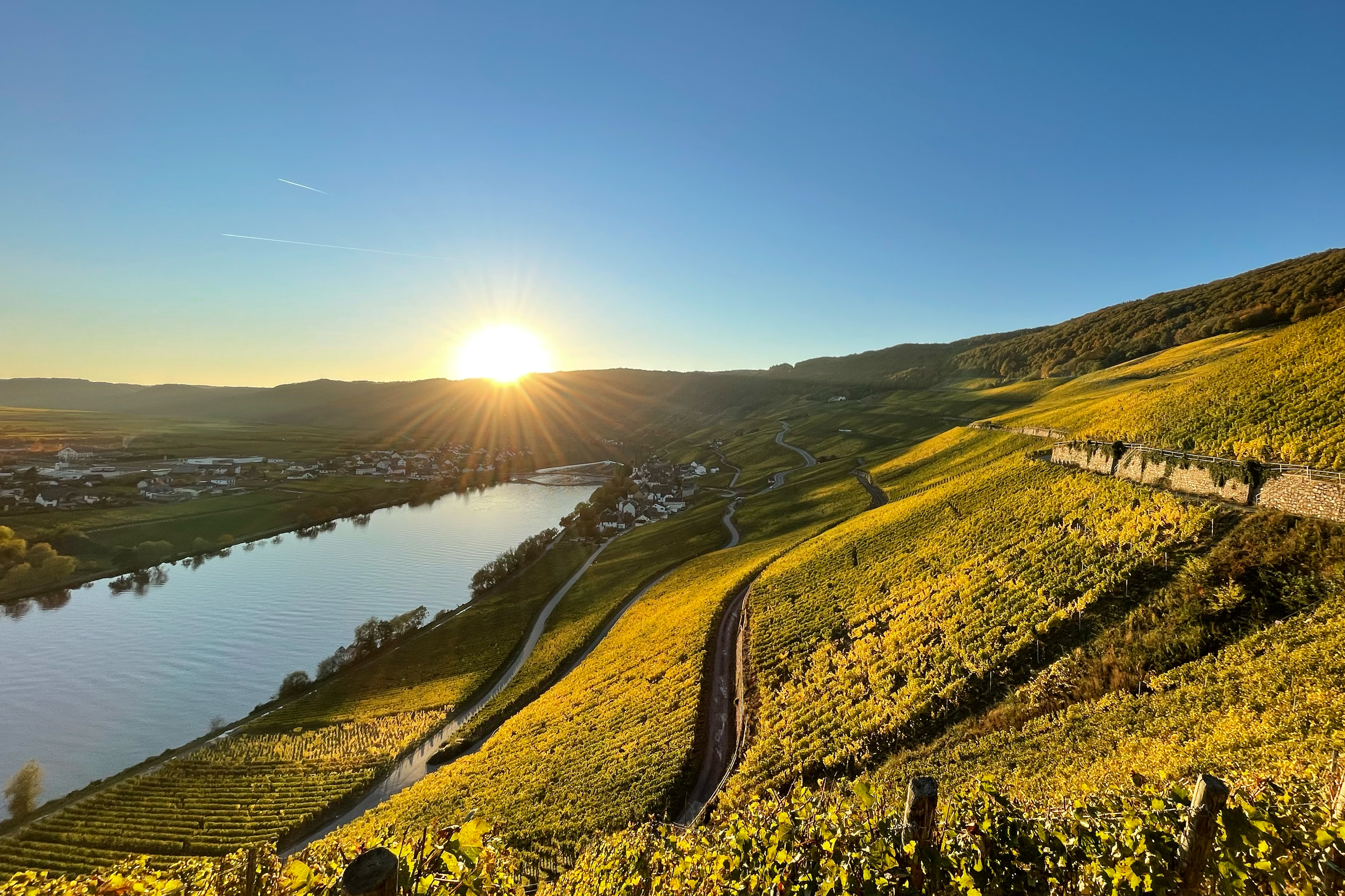 Die Mosel ist mehr als nur ein Fluss – sie ist das Herz unserer Region. Ihre steilen Weinberge, das milde Klima und die jahrhundertealte Tradition prägen nicht nur unseren Wein, sondern auch die Menschen hier. Entdecken Sie mehr über die lebendige Mosel und ihre Weinberge auf www.dlr.rlp.de/Lebendige-Moselweinberge.